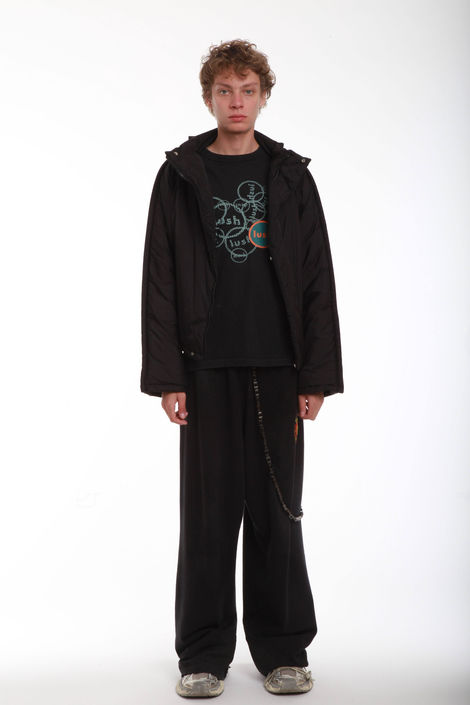 This Maison Margiela Cropped Nylon Jacket was released for their Fall Winter 2019 collection. This jacket is made from padded nylon, with a padded nylon flap covering the Lampo zipper. The cropped silhouette was ahead of its time during release. Margiela executed this piece perfectly. It cozy but sophisticated at the same time. The jacket has a futuristic look to it and is sure to turn heads when walking on the streets. This is a phenomenal Margiela piece that is very rare and hard to come by.