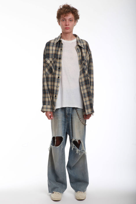 This Celine Plaid Cotton Flannel was featured in the FW 2023 Runway show and is one of the first items to be released from the collection. This piece was only available at the Celine stores in NYC, their online site, and Mr. Porter. This piece is extremely rare and some of Heidi’s best work since he’s been at Celine. This flannel features a loose fit with some high-quality details like seven horned buttons throughout and a heavy cotton blend made in Japan. This is my favorite FW23 piece from any brand right now.
